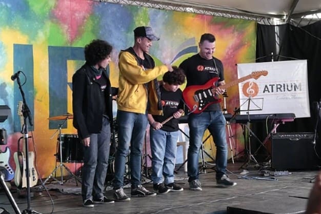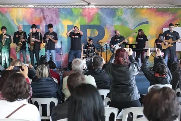 Quem foi a FLIR (Feira do livro de Resende) no domingo, dia 11, pôde prestigiar uma tarde de música boa e ao vivo, num show de professores e alunos da Atrium Escola de Música.